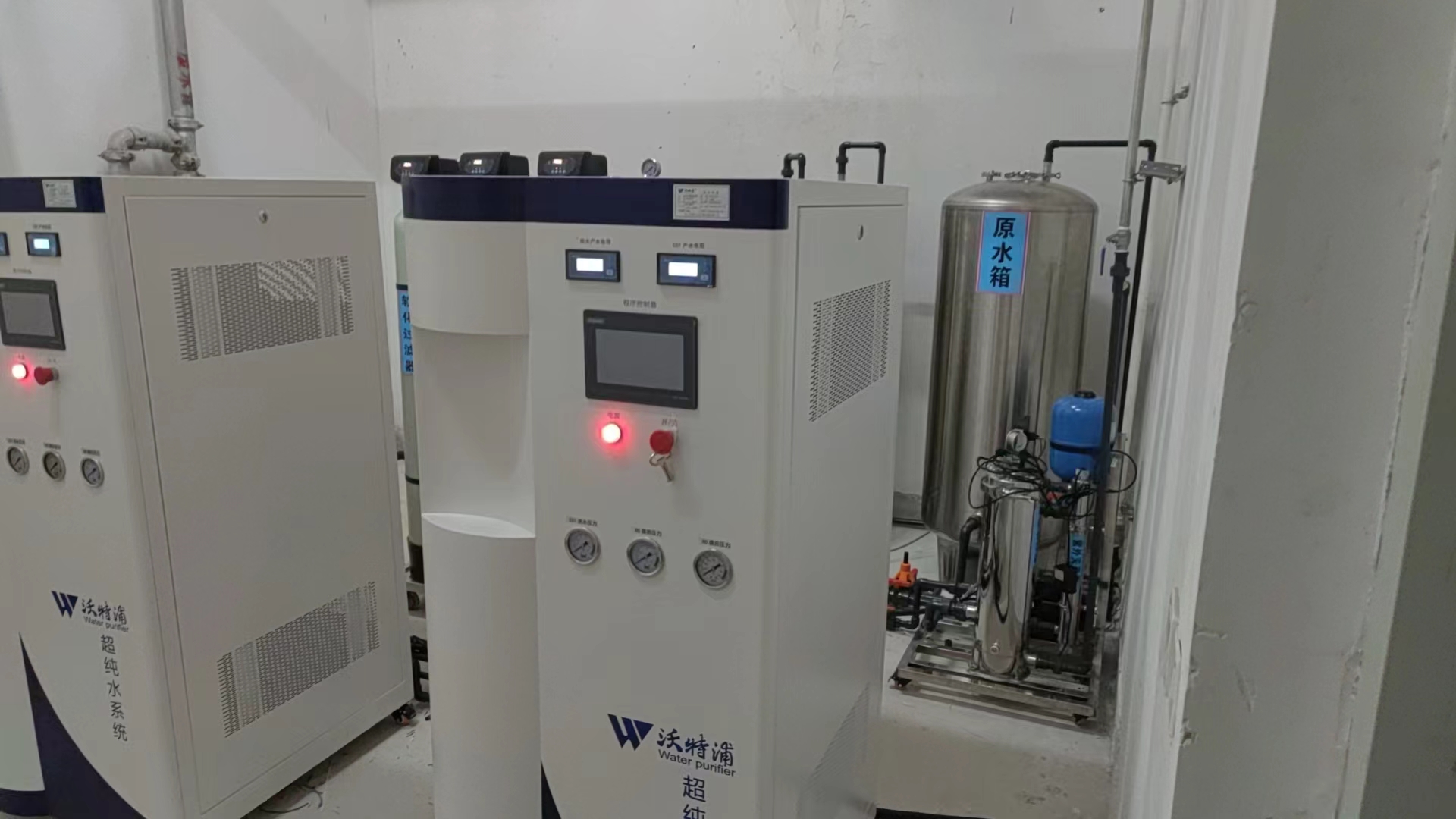 系統(tǒng)由中央純水設(shè)備、純水系統(tǒng)管網(wǎng)、終端純水取水點(diǎn)、終端超純水設(shè)備組成,系統(tǒng)主機(jī)采用一備一用,可同時(shí)制水、不間斷供水,純水電導(dǎo)率≤5μS/cm(25℃)達(dá)到三級水水質(zhì)標(biāo)準(zhǔn),超純水電阻率≥18 M?.cm@25℃,達(dá)到高純水水質(zhì)標(biāo)準(zhǔn)。
