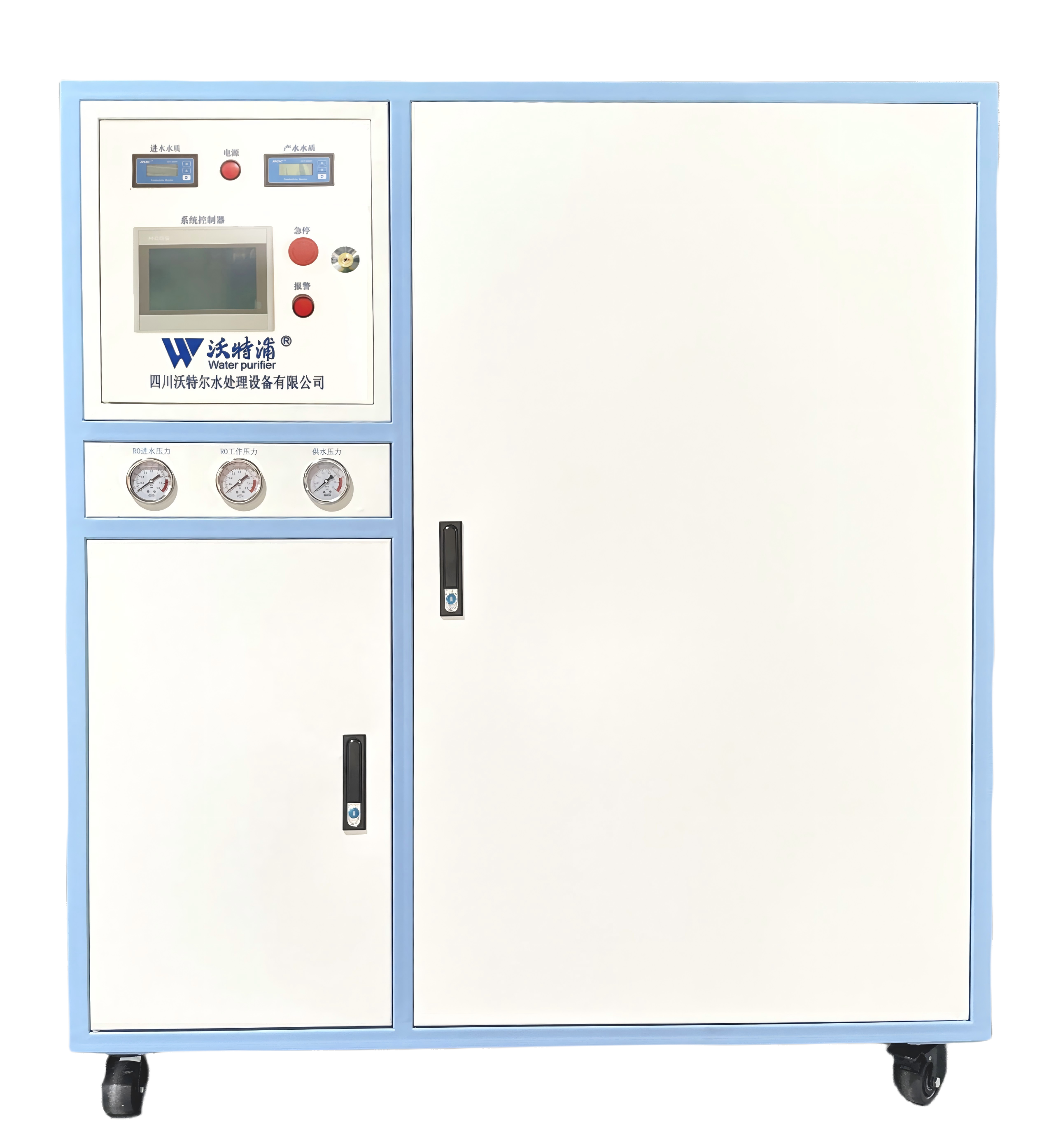 2、原水→原水加壓泵→多介質(zhì)過(guò)濾器→活性炭過(guò)濾器→軟水器→精密過(guò)濾器→第一級(jí)反滲透→PH 調(diào)節(jié)→中間水箱→第二 級(jí)反滲透(反滲透膜表面帶正電荷)→純化水箱→純水泵→離子交換柱→紫外線殺菌器→微孔過(guò)濾器→用水點(diǎn)